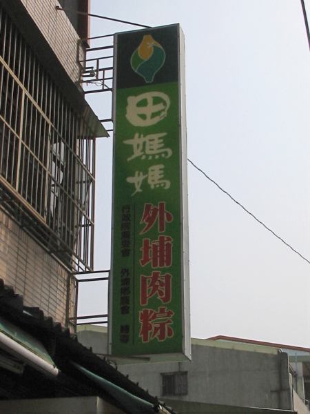 在外埔的街頭穿梭著,對於自己該往哪裡?該去哪裡?倒是全毫無頭緒,在這時候,一個巨型的家具廣告看板似乎是汪洋中唯一的燈塔,指引我方向。循著指示,眼前偌大的綠色招牌「田媽媽外埔肉粽」,這就是我要找的地方。