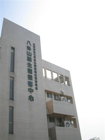 繼續往生態遊客中心的方向走,左邊有一個木造的寮望台,目的應該是讓遊客可以瀏覽山底下景色,不知道是不是設計不良,還是樹長高的關係,視野都被樹給遮住,似乎有點可惜。「八卦山生態遊客中心」就在瞭望台不遠的前方。每年的春分前後一個月左右的時間,會有「灰面鵟鷹(灰面鷲)」飛抵八卦山,因此每年的三月,在八卦山地區都會舉辦【鷹揚八卦】的活動,選擇此時到八卦山來,應該都不難見到灰面鵟鷹在天空翱翔的英姿。