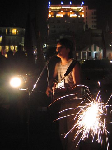煙火施放完畢之後,跟大家一起坐在碼頭上等待人群散去的同時,街頭藝人「阿傑」則是利用空擋在碼頭邊表演,雖然只有短短的兩三首歌,這卻是很棒的表演,讓大家都陷入了一種莫名的感動。表演完畢之後,我主動的跑去跟阿傑握手,只是想告訴他,他的表演讓我覺得很棒。