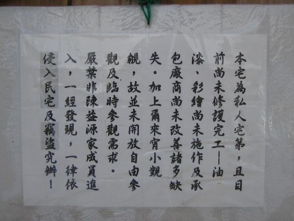 因為益源古厝正在整修中,所以只能從外牆上縫隙中一窺古厝的面貌,古色古香,不難看出曾經風光一時的光景,但因時代久遠,有種繁華落盡且滄桑的感覺。