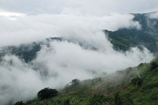 雨並沒有跟著阿華從台北一起下來反而有了難得的好天氣至少在這幾天沒有下雨就算是好天氣了金針山上被厚厚的霧氣給籠罩著遠方的山景是雲朵的遊樂場恣意穿梭期間猶如正上演著一場夢境的變化秀也為金針山增添了一種神祕的美感百合花正在山上盛開越往高處走花開得越多但也因為連日的雨讓原本美麗的百合顯得有些失色雲霧中的百合看似有種高傲而迷濛的美正綻放在金針山上