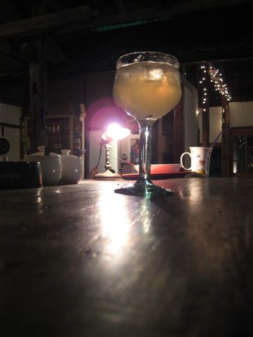 我點了一杯調酒,是咖啡和Vodka調製而成的,朋友點了一杯瑪格麗特。昏暗的黃色燈光,40%的酒精,讓一切都變得很有感覺。