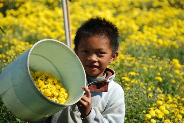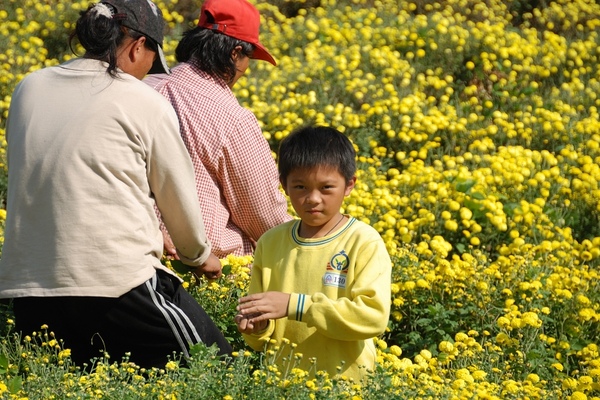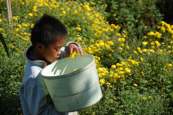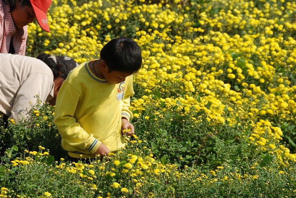 手腳俐落的採著一朵朵高經濟價值的杭菊