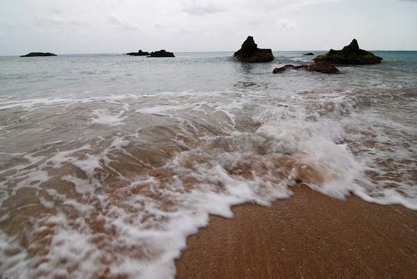 風很大,吹起了沙灘上的沙粒,打在腳上的感覺有些刺痛。今天的天氣有點冷,還是很多觀光客在南灣上玩沙、玩水,一點都不畏懼有點涼的天氣容易感冒,感覺就好像自己以前一樣,總是會抱持著一種「來了都來了」的想法,往往不會顧忌太多的下水去玩,但這樣的衝動似乎離我有一點點小距離了,所以就在沙灘上踩踩沙、拍拍照。