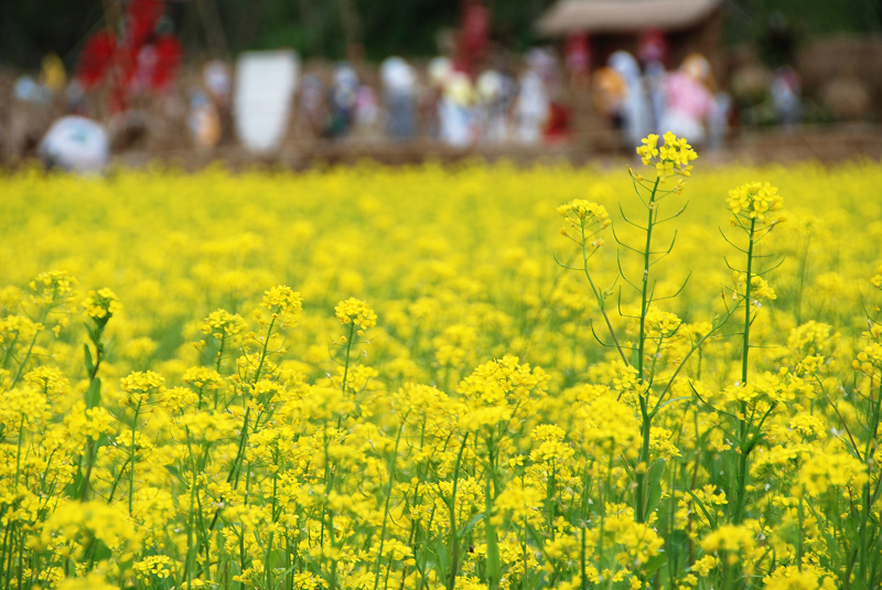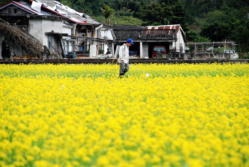 到了,感覺、等待,按下快門,用相機留下觀景窗中的風景,那是油菜花田。