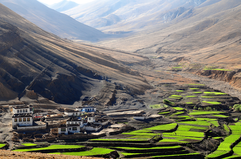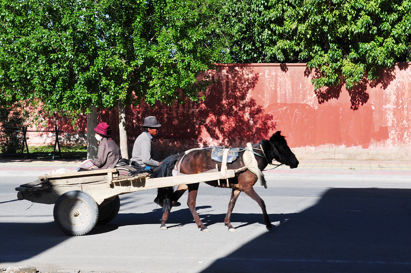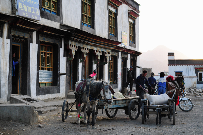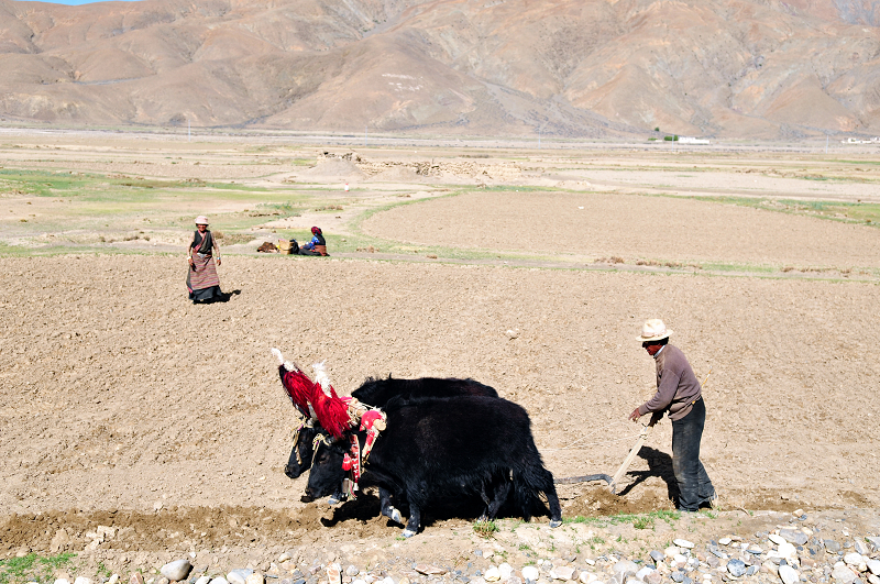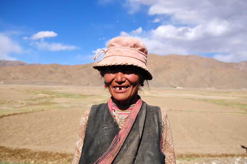 看見藏民在耕作的畫面,我請師傅在一旁停下車。我並沒有下車,在車上拍了幾張照片,也看見遠方有一位藏民的婆婆走了過來,婆婆臉上的笑容的讓我按下了快門,拍完的當下我就覺得自己拍了一張很棒的照片,很棒的並不是構圖和顏色,而是拍照時的紛圍和笑容。照片中的婆婆少了一顆門牙,但那樣的笑容卻是帶著無比的親切。就在拍完之後,婆婆用藏文跟導遊說了一些話,當下的我竟以為要給錢,沒想到婆婆只是希望我能夠把照片送給他,頓時間竟覺得自己是如此的世俗,也打從心裡感覺到羞愧。雖然把照片送給婆婆確實有一定的難度(沒有資料),但我卻希望能夠把這樣的感覺和笑容分享給更多的人,這就是一種簡單而自在的生活。