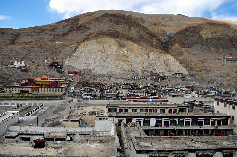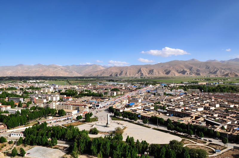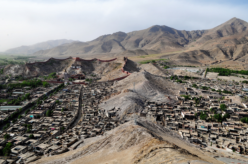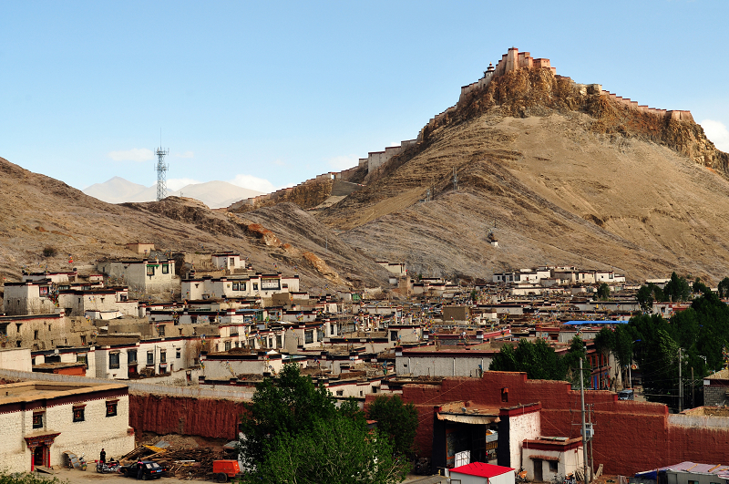 宗山古堡位於江孜縣城內,依著山脈的地勢而建造,迄今約1200年的歷史。攀上宗山古堡的至高點,鳥瞰江孜縣境,歷史就存在新舊城區的軸線上。而白居寺就在遠方山腳下的丘陵上,四周被城牆包圍住,宛若是個戒備森嚴的城區,在歷史上,白居寺亦在江孜地區佔了很重要的政治與宗教地位,而如今亦是宗教上的重要指標。