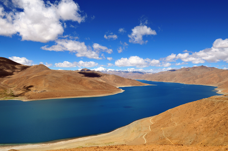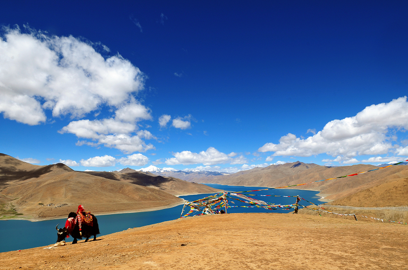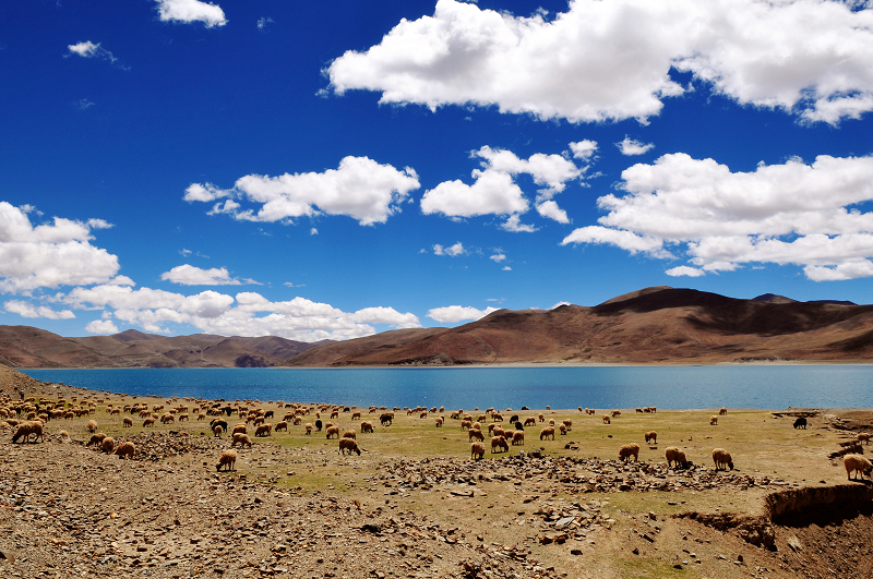 羊湖是西藏三大升湖之一,海拔4456米,也是旅程中第一個遇到的高山湖泊。藍色的湖面和天空相互揮映,這是大自然給旅人最棒的禮物,能夠用眼睛去感受眼前的迷人風景,一點一滴累積自己旅程的豐富,就像拿了一支色筆在紙上彩繪出迷人的色彩,而這只是開始。