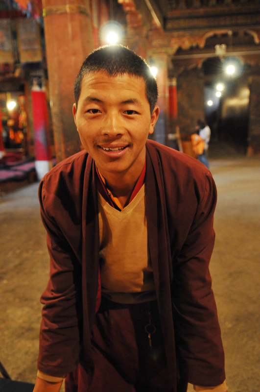 這位僧人是在寺廟內賣開過光的佛珠或是法器,很樂意讓我們拍照!