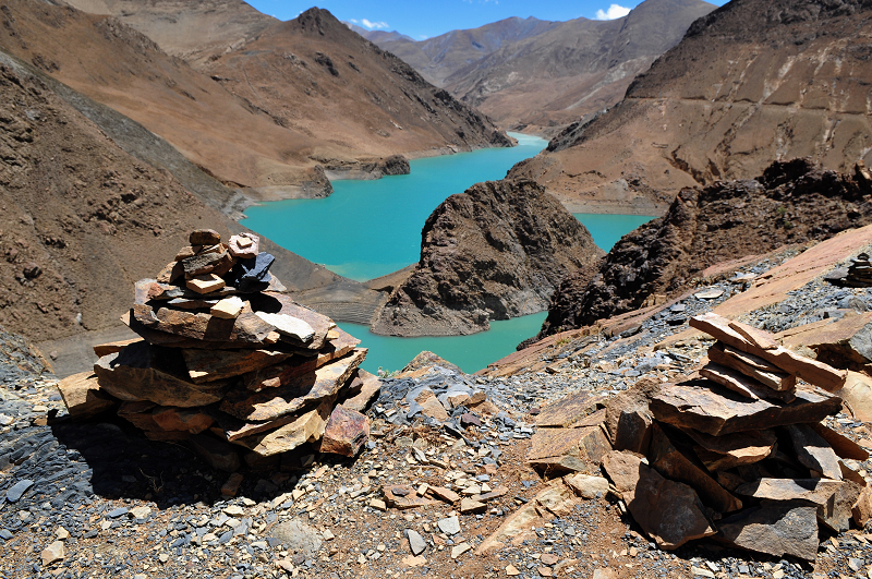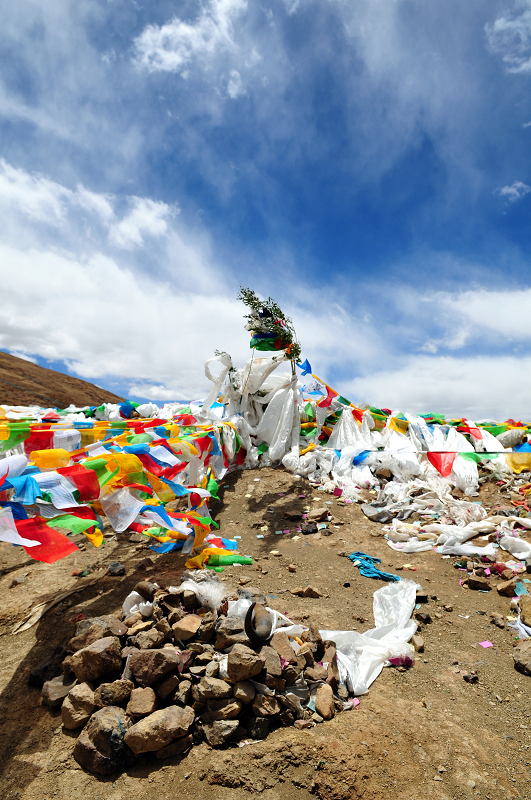 一路上會經過一個又一個的山口,在山口上總是可以看得到成群的瑪尼堆,似乎在為停留的旅人祝福,撿起地上的石頭也堆起了瑪尼堆,留下給這片土地的祝福,也期待自己的旅程能夠平安完成。