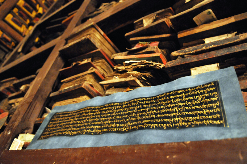 白居寺蒐藏了非常豐富的經書,在寺廟內可以看到一個又一個高大櫃子,上頭推著滿滿的經書,很幸運的,這些經書並沒有在文革時期被焚毀,也保留了豐富的歷史價值。