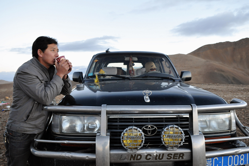 這是一趟將近四千公里的旅程,搭上黑色豐田4500的越野車,坐在駕駛座的是藏族的師傅-白瑪,一路上白瑪師傅總是讓我們很放心的享受在這段旅程中;而坐在後座小椅子的也是藏族的導遊-札西,能夠講一口流利的英文,對於西藏的歷史、宗教的發源都非常的清楚,一路上也總是喜歡跟我們開玩笑。很幸運的能夠遇到很棒的師傅和導遊,也為我們這趟旅程加了不少分。