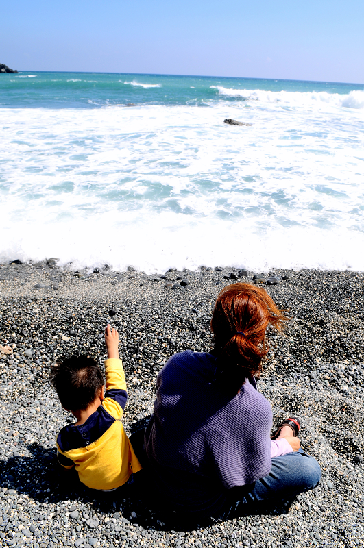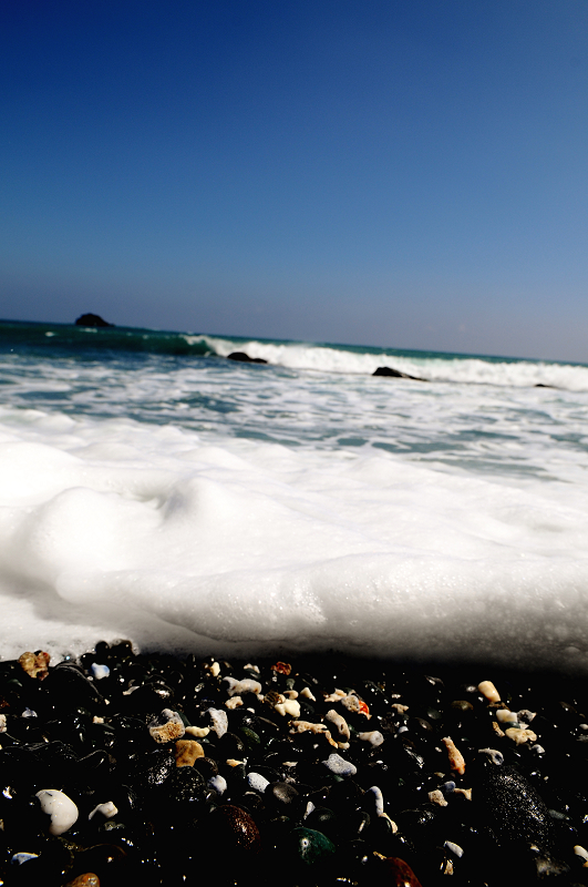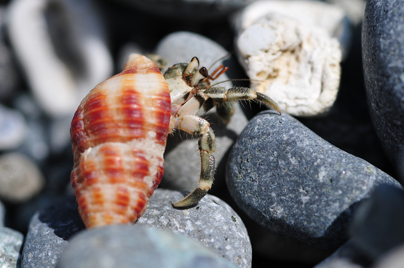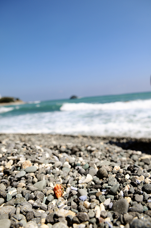 坐在岸邊,聽著海浪捲動石頭的鼓掌聲,我隨手拾起了石頭,丟向大海...卻也發現有隻寄居蟹正在偷偷摸摸的移動中。