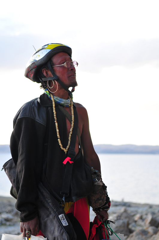 他,怪異的裝扮很難不讓人吸引目光。而他,在外流浪已經7年的時間,曾經有過很好的事業發展,離家這麼多年一直在尋找自己,騎著單車四處流浪,一路上也遇到了許多的危險,甚至差一點成為惡狼的獵物,但也因此與家人失去聯繫。我想我沒有這樣的勇氣,因為我一直都在自己的能力範圍、自覺安全範圍內去嘗試、挑戰自己,原以為自己也在一種所謂的流浪過程中,因為遇到了這位仁兄,也讓我深刻的體會「流浪」到底是怎麼一回事,而自己的旅程僅能勉強稱上是一趟的「長途旅行」罷了。我欣賞他在尋找自我的勇氣、面對困難的勇氣,但也僅止於此。