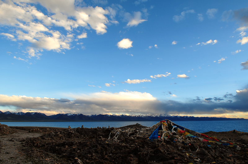 來到納木措,三大聖湖中的最後一個,是世界上最高的鹹水湖。在這裡遇到的車變多了,人也變多了,卻突然因為回到現實而驚醒。回想起自己在阿里、藏北草原的旅程,卻反而懷念起那種種遠離人群的自在。這一趟旅程下來,因為經歷了很多不同的生活,從拉薩到阿里,從阿里到藏北草原,又從藏北草原慢慢結束荒野的旅程而回到文明,存在著一種奇妙的衝突感,卻也讓自己有很多不同的經歷,或許這也是旅程中最吸引人的部份吧!