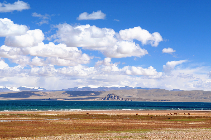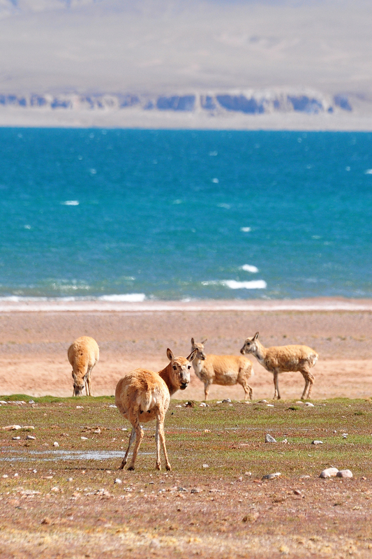 慢慢的,我們已經進入藏北草原的區域範圍,這裡是野生動物的天堂。野驢、藏羚羊、黃羊...,在安全的距離範圍內注意著我們的行動,不過當看到藏羚羊的時候,我就像是個孩子一樣興奮、開心。一路上又遇見了幾個大小不一的湖泊,每個都美的猶如寶石般的珍貴。我們也在牧民開的茶館小憩,喝著熱騰騰的甜茶,吃著剛蒸好的牛肉丸子和風乾羊肉,讓肚子能夠有飽足的感覺。隨著和最後一個聖湖那木措的距離越來越近,也意味著我們即將回到文明的世界,過程中的辛苦、不便似乎也都隨著草原上的風消逝。一直到了拉薩的機場,飛機起飛的那一刻,我的心就此遺忘在這片迷人又神上的高原上...