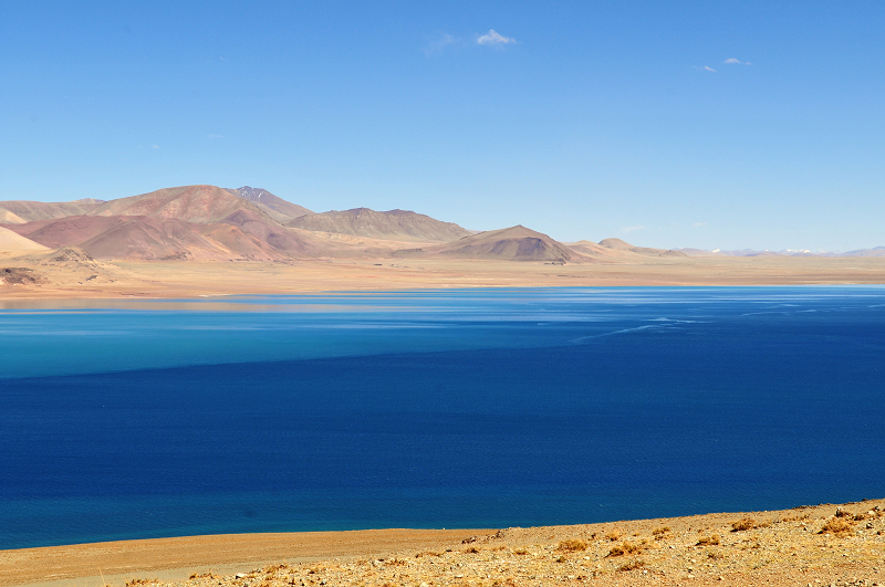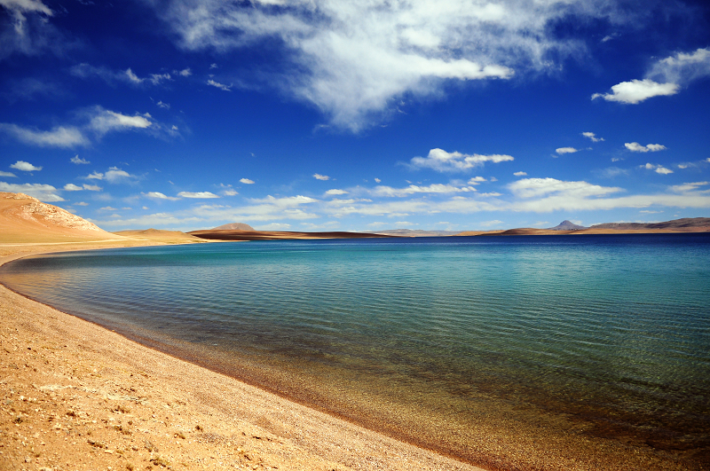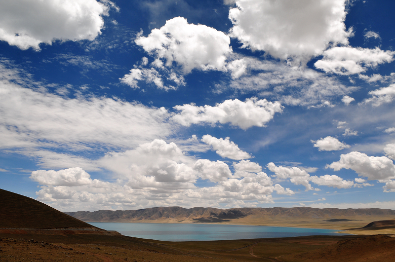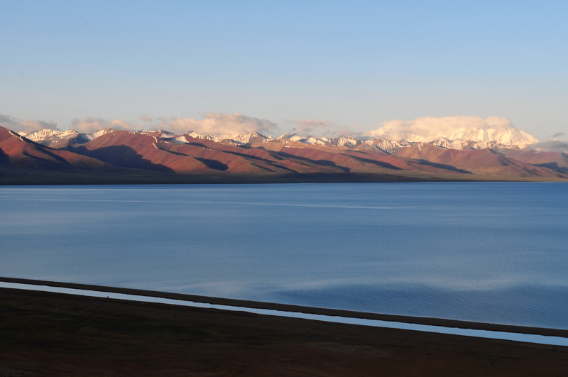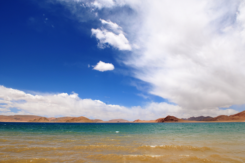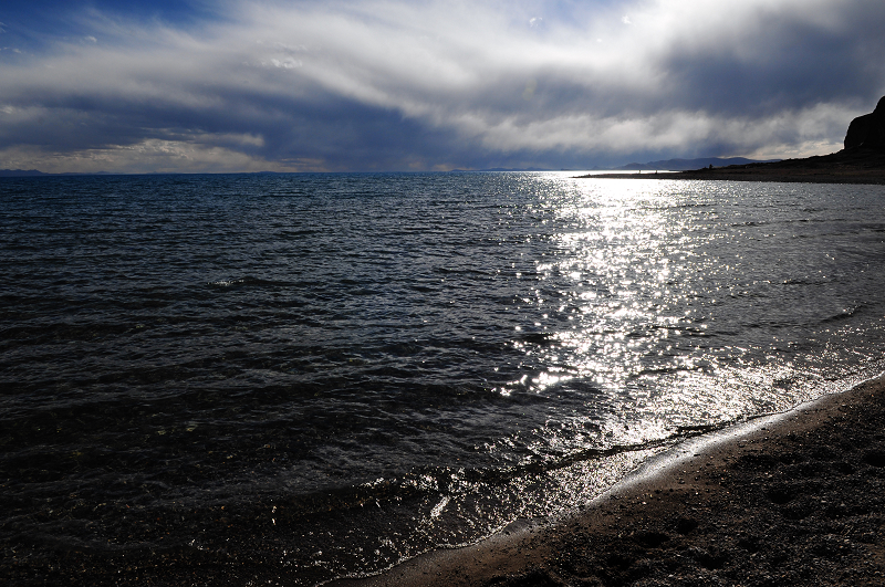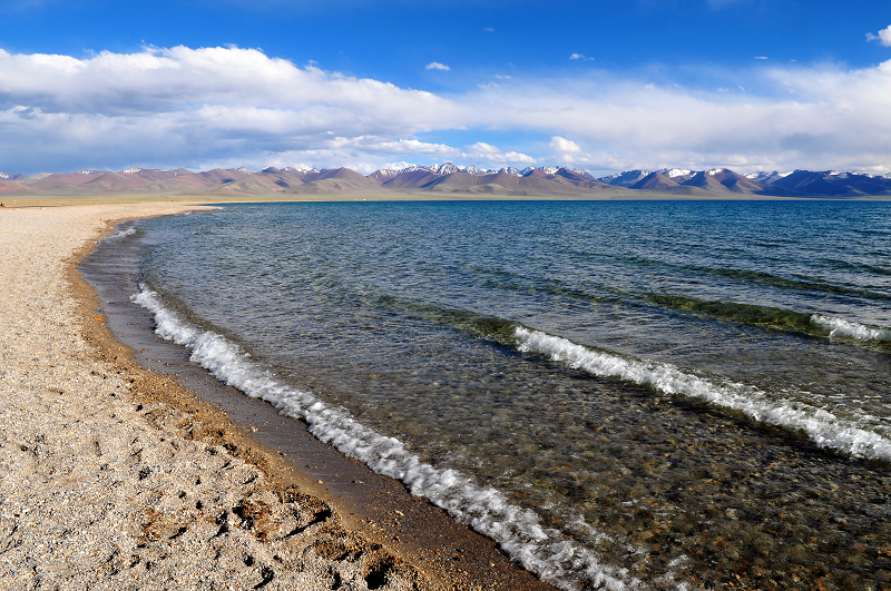 還記得剛上路的時候,每看到一個湖泊我就會請白瑪師傅停車讓我下來拍照,那時候白瑪師傅和導遊扎西就說了,這一路上會有看不完的湖,果真如此。我也已經不記得這一路上總共看見多少個美麗的湖泊,但我的印象就是,每一個都有像嘉明湖一樣的美麗,而且每一個都是嘉明湖的好幾倍大,甚至有數百倍大,而我都一直被一個又一個的湖泊景色給震攝住。我會靜靜的坐在湖畔,看著湖面因為風而激起的漣漪不斷的推上岸,那是一種和大自然共存的感覺,而自己在其中卻是如此的渺小,而旅行的過程就是讓自己成為其中的一部份,感受這世界存在的真實與自我世界的虛幻。就在當下,我的眼睛依然注視著水面上的漣漪。