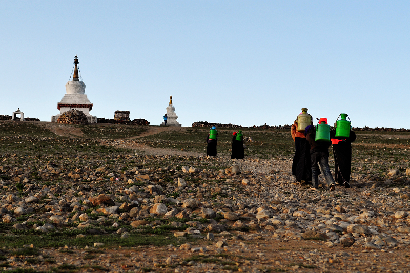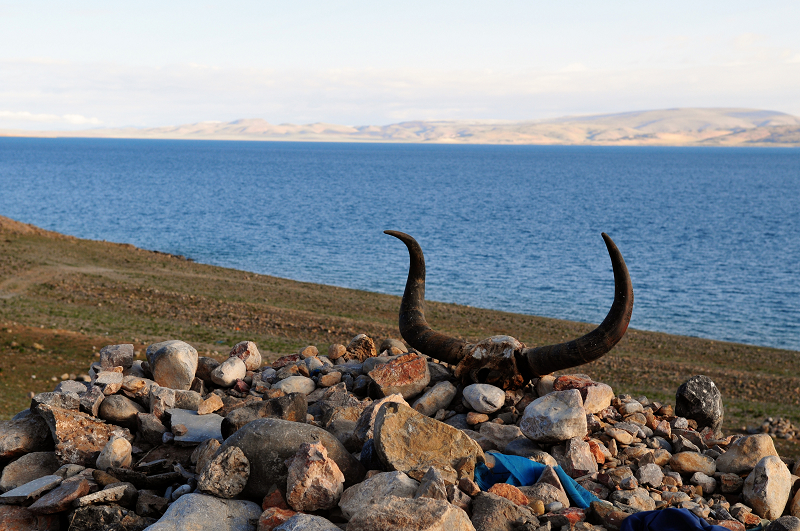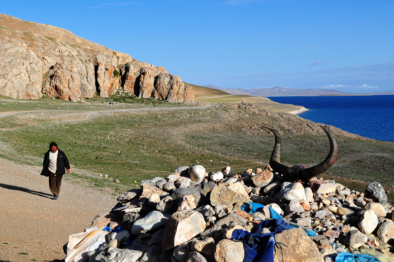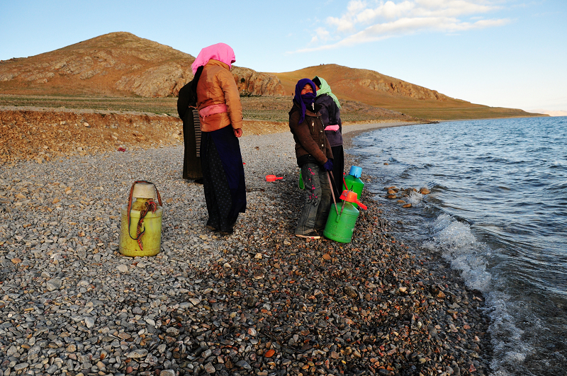 清晨,藏民也從信仰開始一天的生活,手拿佛珠、轉經筒,沿著納木措畔轉山。