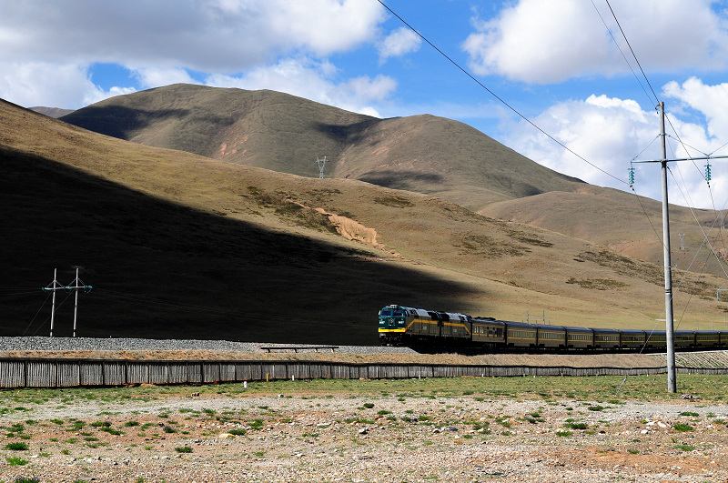 在當雄,可以在路旁就很容易的看見青藏鐵路。我們很幸運的剛好遇見了一列從上海到拉薩的列車疾駛而過,我心想在這列火車上有多少人是跟我一樣,懷著夢想來到一個自己夢境中的國度,我是帶著期待又興奮的心情,而他們呢?
