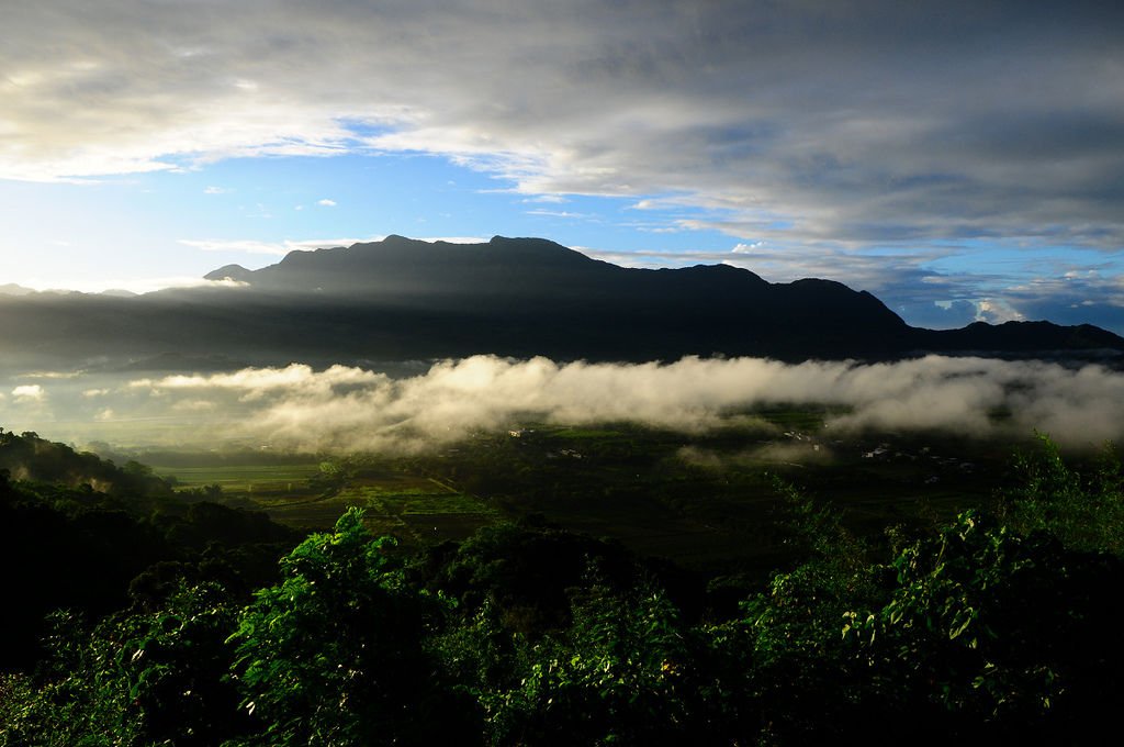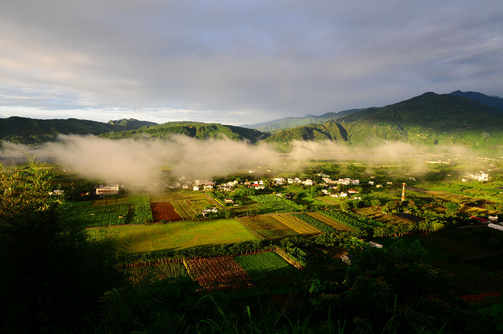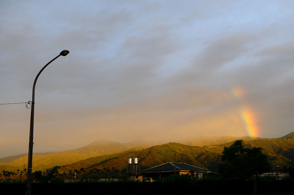 就在7月6日這一天要出門拍照的時候,在經過卑南的時候竟然意外的發現山邊有一抹彩虹,是意外的驚喜,由於時間很早,到高台的時間差不多是清晨6點鐘,那平地上的雲霧、山間的霧氣,是早晨美好的禮物,能夠看見這樣的景色,似乎為這一天帶來美好的開始。