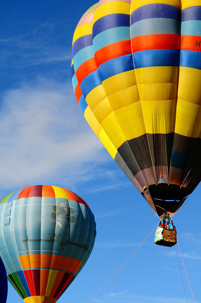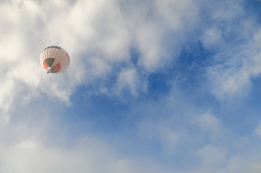 這一天,天氣狀況很適合熱氣球的飛行,所以幾乎所以的熱氣球都出動了,有2顆熱氣球在充完氣之後就往天邊飛去,而其他6顆熱氣球則是供遊客搭乘,也在高台的草地上接連著充氣。藍天似乎是熱氣球最棒的背景,拍照也感覺比較好看一些,在經歷這一天的拍照之後,總覺得清晨的時刻比起傍晚來說,是比較適合拍照的時間,而且還可以看到周圍景色的變化,有比較多的素材可以發揮,再來也是藍天的機會比較高一些。